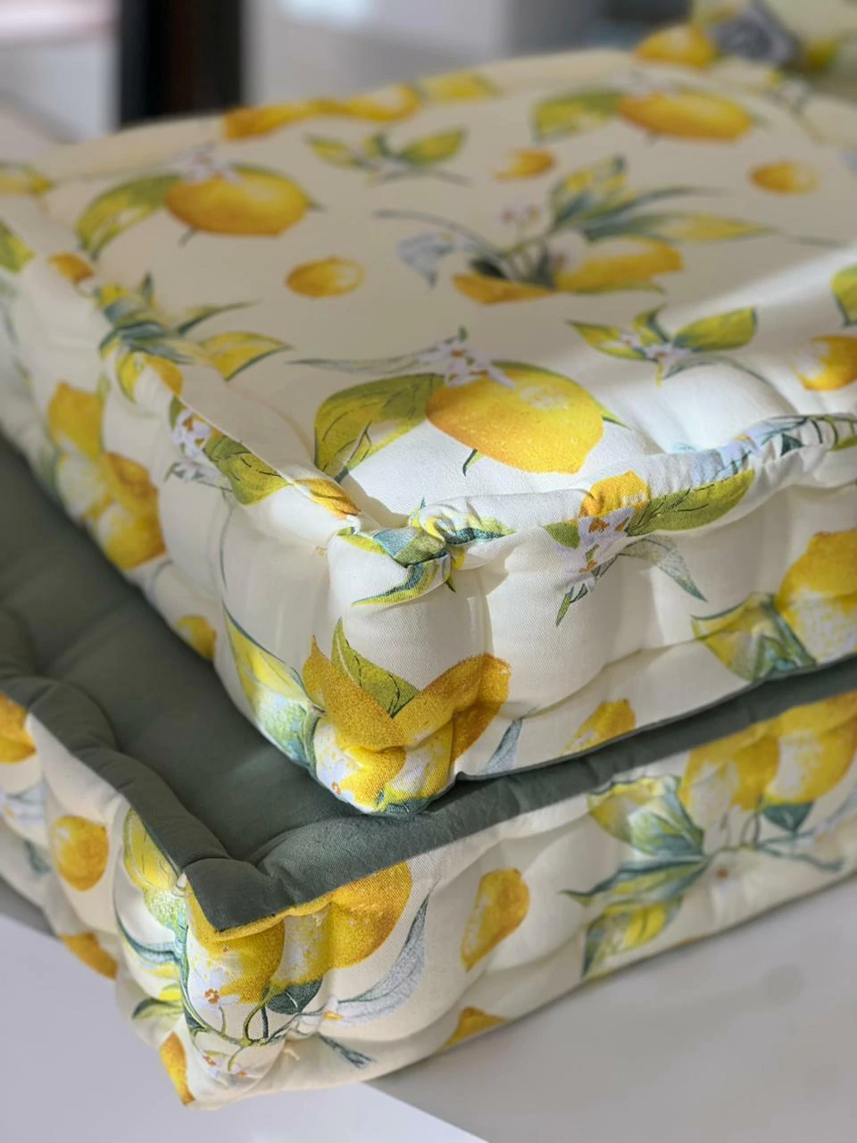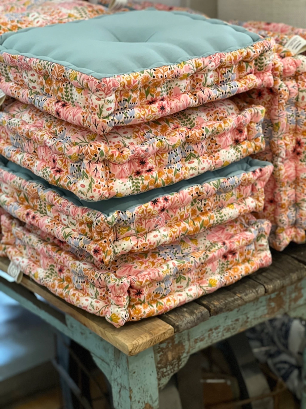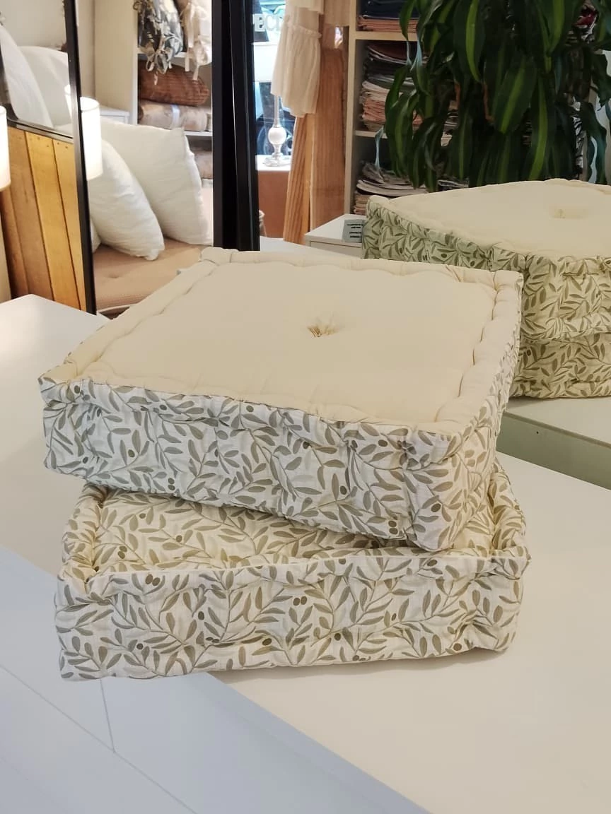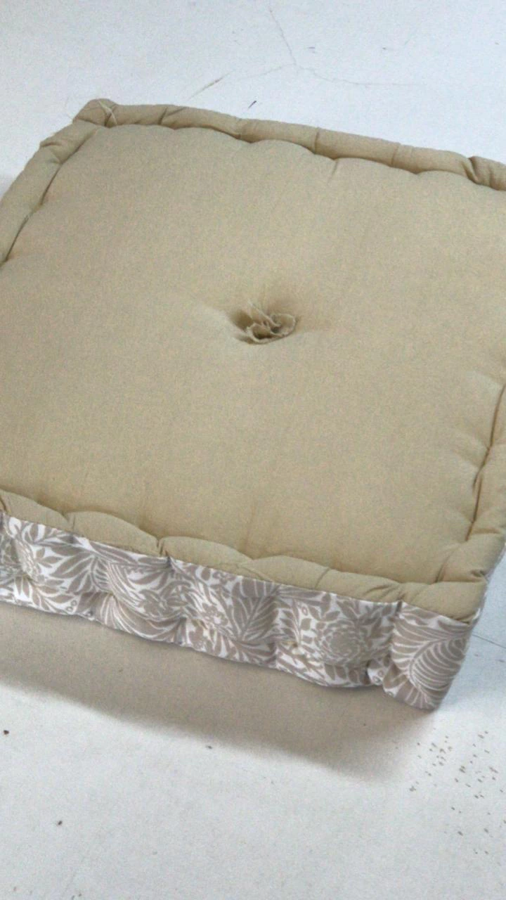 ( estos almohadones se cortan en 40x40cm, y al coserlos uno por uno a mano, achican 1 ó 2 cm.)