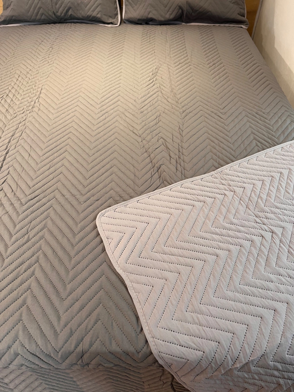 COVER REVERSIBLE MATELASEADO LASER ZIG ZAG CON FUNDAS DE ALMOHADONES.