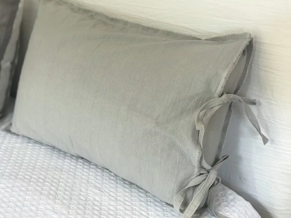 Funda para almohada, en Tusor pre-lavado con tiras para atar en el lateral.