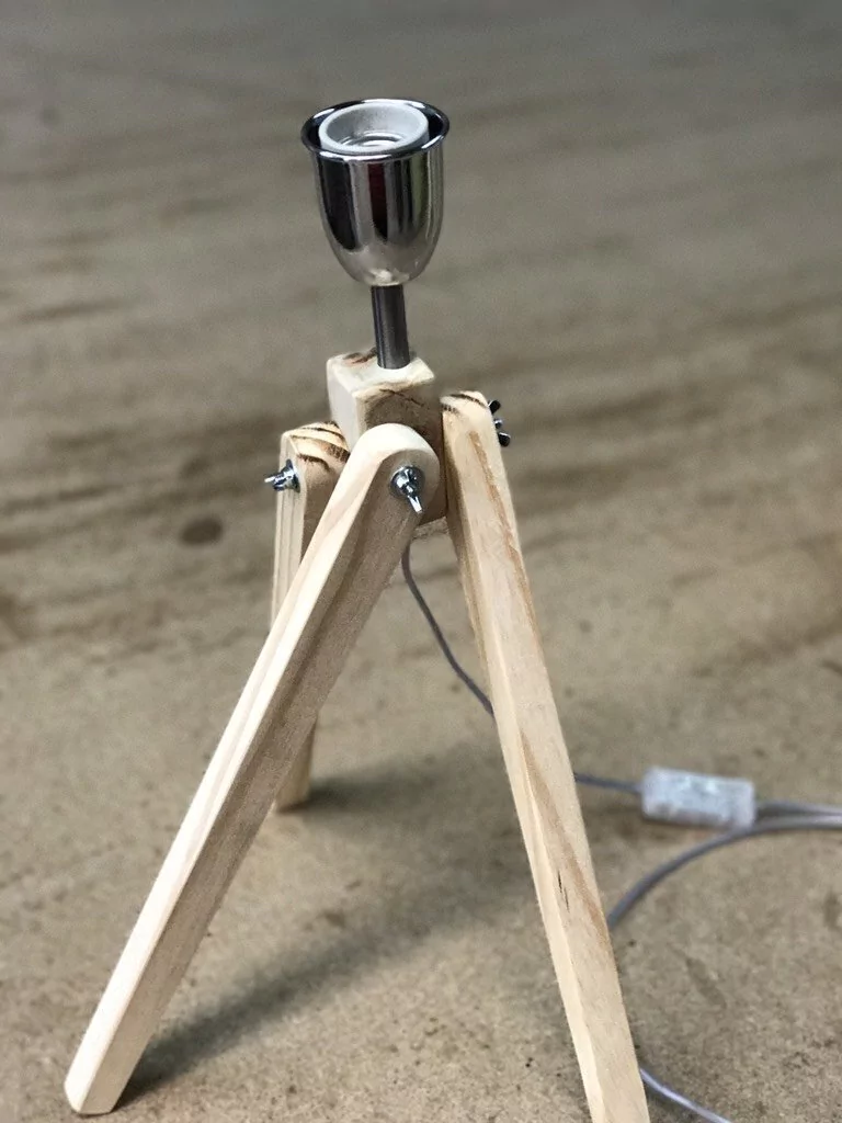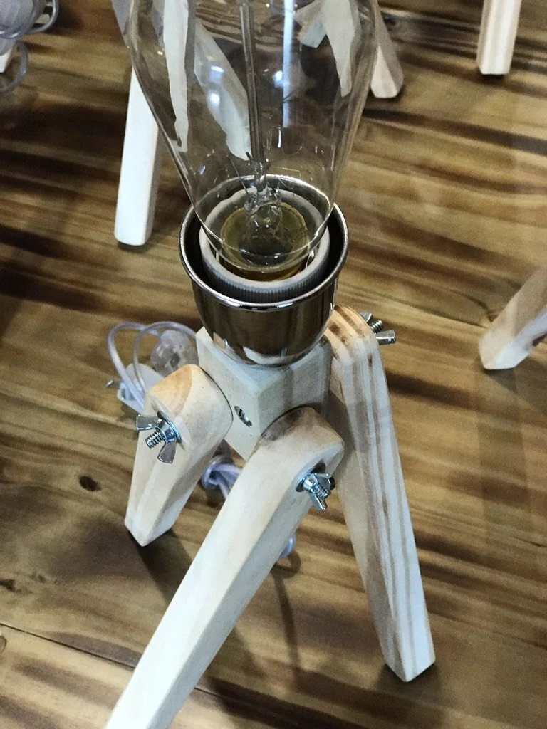 Velador realizado a mano en madera. Modelo tripode de 30 cm de alto.